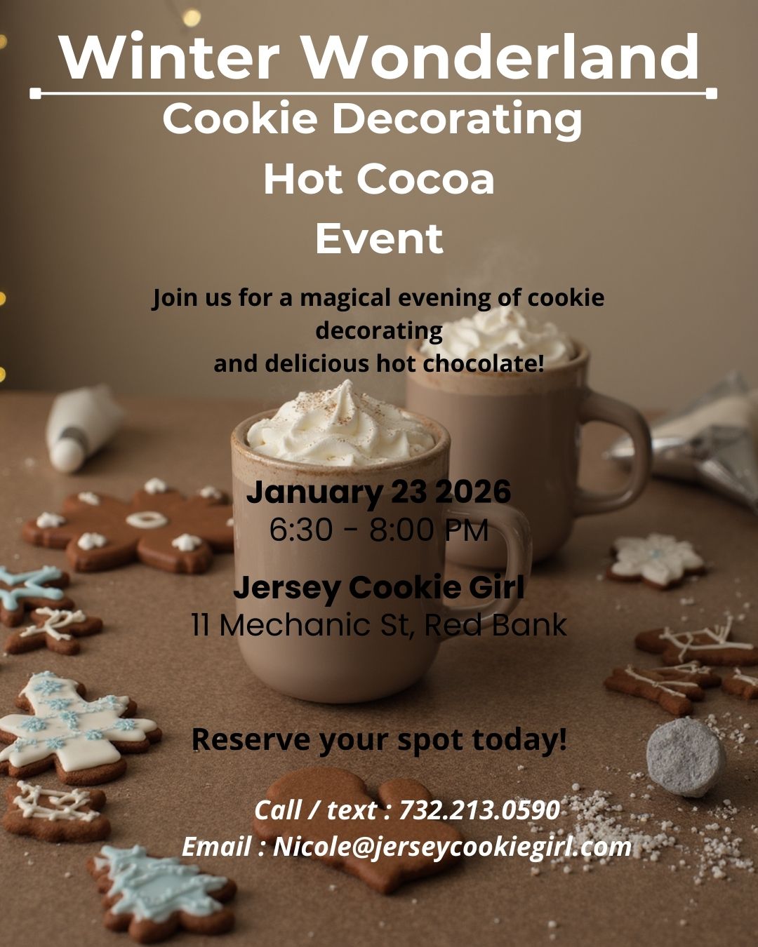 Join Jersey Cookie Girl for festive Gingerbread House Decorating Fun! Choose from multiple December class times and enjoy creating your own holiday masterpiece. All sessions are held at 11 Mechanic St, Red Bank, NJ.